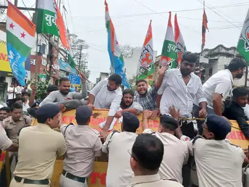 रायगढ़ । रायगढ़ में आज सैकड़ो कांग्रेसी जेल भरो आंदोलन में शामिल हुए। जिला कांग्रेस कमेटी से युवा कांग्रेस व एनएसयूआई के पदाधिकारी व कार्यकर्ताओ ने रैली निकालकर स्टेशन चौक, एमजी रोड से कन्या कॉलेज होते हुए हंडी चौक पहुंचे। raigarh जहां पुलिस के द्वारा बैरिकेट्स लगा कर उन्हे वहीं रोक लिया। इस दौरान कांग्रेसी कार्यकर्ताओं ने जमकर नारेबाजी की। इसके बाद सभी को पुलिस रामलीला मैदान ले गई, जिसे अस्थाई जेल बनाया गया था। यहां करीब 180 से अधिक कांग्रेसियों ने गिरफ्तारी दी। इसमें पूर्व विधायक प्रकाश नायक के साथ जिला कांग्रेस कमेटी अध्यक्ष अनिल शुक्ला, युवा कांग्रेस प्रदेश महासचिव राकेश पांडे, रायगढ़ युवा कांग्रेस अध्यक्ष आशीष जयसवाल, एनएसयूआई जिलाध्यक्ष आरिफ हुसैन सहित सैकड़ों की संख्या में कांग्रेसी शामिल थे। पुलिस द्वारा हंडी चौक पर सभी प्रदर्शनकारियों को रोक लिया गया था। ऐसे में युवा कांग्रेसी बैरिकेट्स को पार करने की भी कोशिश करने लगे, पर दूसरी ओर से पुलिस ने जोर लगाया और उन्हें आगे नहीं बढ़ने दिया।