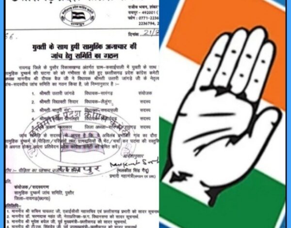 वहीं लैलुंगा विधायक विद्यावती सिदार, सरायपाली विधायक चातुरी नंद, बिलाईगढ़ विधायक कविता प्राणलहरे और सारंगढ़ जिलाध्यक्ष अरूण मालाकार को कमेटी में रखा गया है। ये जांच समिति संबंधित गांव का दौरा कर घटना की जानकारी लेगी और अपनी रिपोर्ट पीसीसी चीफ को देगी।