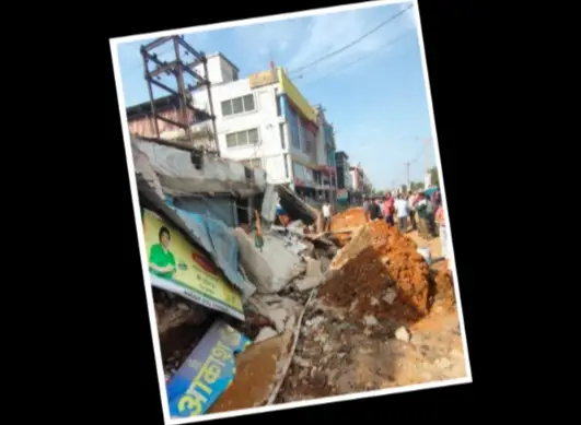 बताया गया कि मुख्य मार्ग पर 40 साल से भी अधिक पुराना अलका काम्प्लेक्स है और इन दिनों बगल व सामने की सड़क खोदकर टीपी नगर में नाला निर्माण का कार्य चल रहा है। इससे लगे काम्प्लेक्स के 4 दुकान जेसीबी से खुदाई के दौरान धराशाई हो गये। कोई जन हानि तो नहीं हुई लेकिन घटना से व्यापारी दहशत में आ गए हैं।