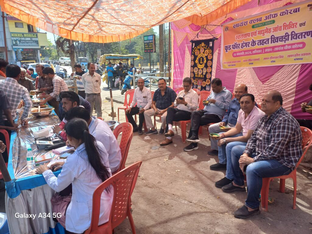कोरबा। लायंस क्लब आफ कोरबा द्वारा लायंस चौक में शिविर लगाकर डायबिटिज व रक्तचाप की नि:शुल्क जाँच रेनुका डायग्नोसिस सेंटर के टेक्नीशियन के सहयोग से की। इसमें लगभग 200 व्यक्तियों और लायन सदस्यों की नि:शुल्क जांच की गयी। कार्यक्रम की अध्यक्षता क्लब अध्यक्ष लायन रोहित राजवाड़े ने की। तत्पश्चात फूड फॉर हंगर के तहत खिचड़ी वितरण किया गया। जिसमें लगभग 1500 लोगों ने खिचड़ी का लाभ प्राप्त किया। उक्त कार्यक्रम में पीएमजेएफ लायन जयप्रकाश अग्रवाल, लायन रोहित राजवाड़े, लायन राजकुमार अग्रवाल (उत्सव), लायन रविशंकर सिंह, लायन नंदकिशोर अग्रवाल, लायन संतोष खरे, लायन भगवती अग्रवाल, लायन दीपक माखीजा, लायन दीपक अग्रवाल, लायन भाविन उपाध्याय, लायन रमेश शर्मा सहित अन्य लायन सदस्यों ने उपस्थित होकर कार्यक्रम को गरिमा प्रदान की।