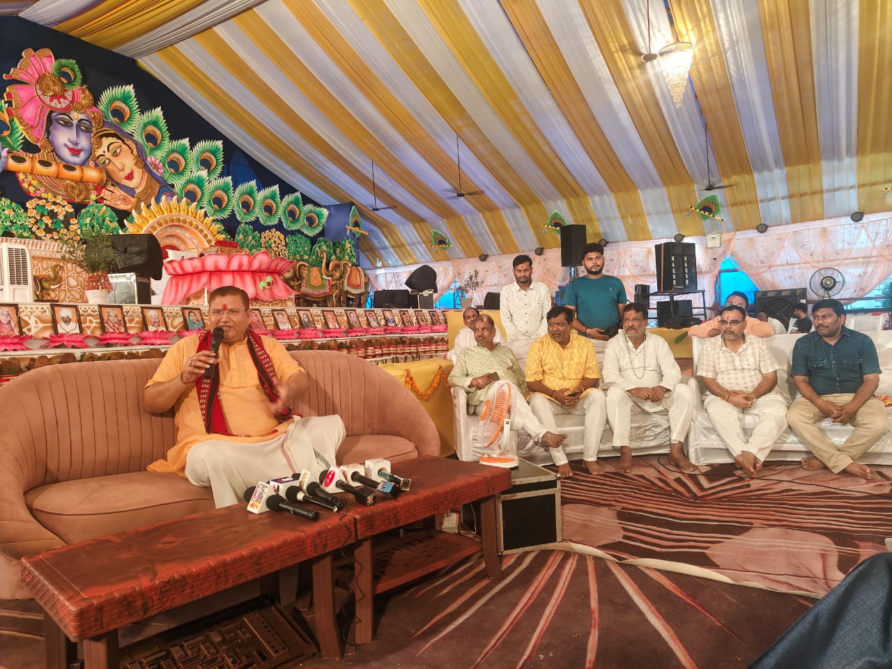 आचार्यश्री के पत्रकार वार्ता में बिरजू अग्रवाल,हनुमान अग्रवाल, गोपी अग्रवाल, महेश अग्रवाल,संजय अग्रवाल, नरेश गर्ग सहित ठण्डुराम परिवार के जजमान उपस्थित थे
