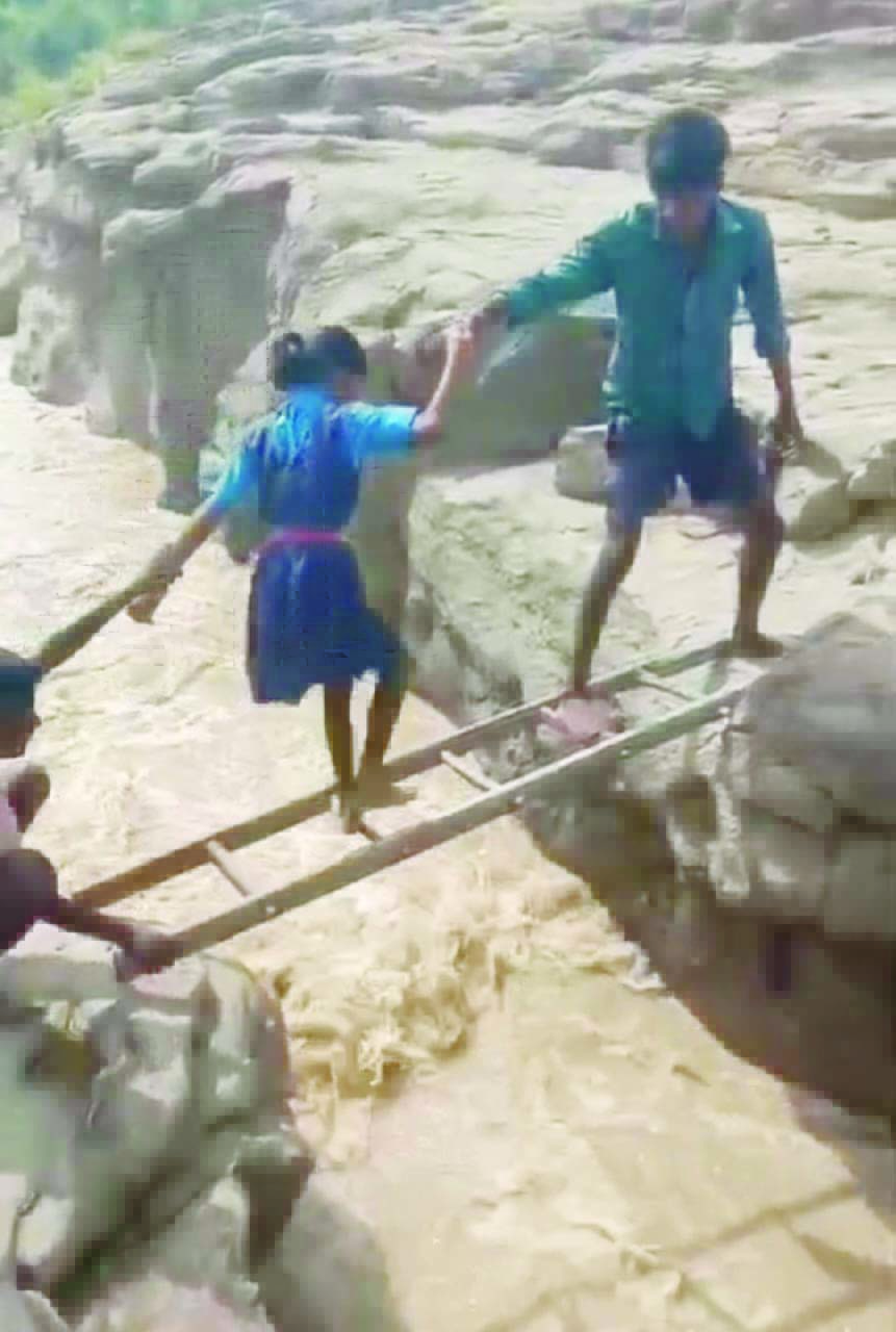 कोरबा। पोड़ी उपरोड़ा ब्लाक के ग्राम सेंदुरगढ़ के स्कूली बच्चों को स्कुल जाने के लिए रास्ता ही नहीं। बच्चे जान जोखिम मे डालकर नाले मे लकड़ी का पटरा लगाकर प्रतिदिन पार करते हैं । बारिश में ज़ब नाले मे पानी उफ़ान पर होता है तब स्थिति असामान्य हो जाती है । लंबे समय से इस प्रकार की परिस्थितियों यहां बनी हुई है लेकिन इसका निराकरण करने के लिए अब तक कोई ठोस काम नहीं हो सका है। आदिवासी बाहुल्य विकासखंड में इस प्रकार की चुनौतियों के बारे में शिक्षा विभाग के अधिकारी अंजान बने हैं।सभी क्षेत्रों में शिक्षा और स्वास्थ्य को लेकर सरकार विशेष काम कर रही है लेकिन कुछ क्षेत्र ऐसे भी है जहाँ शिक्षा तो है लेकिन सुविधा नहीं।पोड़ी उपरोड़ा विकास खंड के सुदूरअंचल क्षेत्र सेंदुरगढ़ ग्राम पंचायत के बच्चे साशीन मिडिल स्कुल मे पढ़ाई करने जाते हैं लेकिन स्कुल जाने के लिए मार्ग नहीं है। बच्चे जान जोखिम मे डालकर नाला पार करते हुए स्कुल जाते हैं, तब हालात भयानक हो जाता है ज़ब नाले का पानी उफान पर होता है मजबूरन बच्चे लकड़ी का पटरा डालकर नाला पार करते हैं।