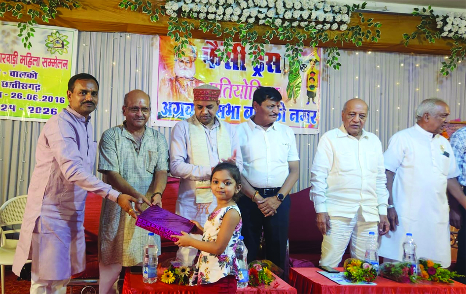 बालकोनगर। अग्रवाल सभा बालकों द्वारा मंगलम भवन बालको में महाराजा अग्रसेन जयंती का कार्यक्रम धूम धाम से संपन्न हुआ। महाराजा अग्रसेन जी की विधि विधान से पूजा अर्चना की गई। विभिन्न प्रतियोगिताओं में जिन बच्चों ने और महिलाओं ने भाग लिया । विजेताओं को पुरस्कार वितरण किया गया । कार्यक्रम में मुख्य अतिथि के रूप में नगर के वरिष्ठ समाजसेवी प्त अग्रवाल, विशिष्ट अतिथि के रूप में महेश अग्रवाल, महेश गुप्ता, भीमसेन अग्रवाल, सुमेर डालमिया, पार्षद नरेंद्र देवांगन उपस्थित रहे । नगर निगम के नेता प्रतिपक्ष, अग्रवाल सभा बालको के अध्यक्ष हितानंद अग्रवाल ने अपने उद्बोधन में अग्रवाल सभा द्वारा किए गए कार्यों का विवरण दिया। उन्होंने बताया कि अग्रसेन महाराज भगवान राम के सुपुत्र उसके कुश के 34 में पीढ़ी में अवतरित हुए। उन्होंने अग्र उदय राज्य की स्थापना की, उन्हें पशु वध एवं मांस – मदिरा सेवन का विरोध किया । समाजसेवी महेश अग्रवाल ने नेत्रदान के विषय पर प्रकाश डाला।मुख्य अतिथि रामसिंह अग्रवाल ने कहा कि सभी अग्र बंधुओं को एकजुट होकर एक दूसरे का सहयोग करना चाहिए। महाराज के समाजवाद के देवता थे । उनके संदेश को सभी को बताना चाहिए । पार्षद नरेंद्र ने कहा कैबिनेट मंत्री लखन देवांगन रायपुर प्रवास में होने के कारण उपस्थित हैं लेकिन उन्होंने समाज को पूरा सहयोग करने का आश्वासन दिया। भवन निर्माण हेतु यह सहयोग करेंगे। सफल संचालन सचिव नितेश डालमिया ने किया। महिला मंडल के अध्यक्ष मंजू अग्रवाल, ललित अग्रवाल, रेखा अग्रवाल, उषा अग्रवाल मुख्य रूप से उपस्थित रहें ।
