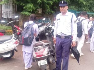 एएसपी नेहा वर्मा और यातायात टीम की स्कूलों के बाहर दबिश