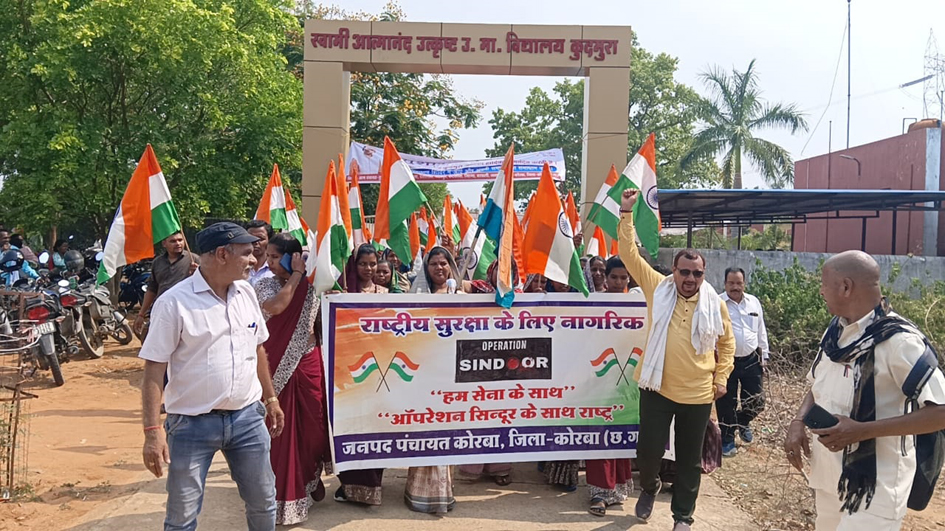 जम्मूकश्मीर के पहलगाम में हुए आतंकी हमले के खिलाफ ऑपरेशन सिन्दुर चलाया गया। जिसके तहत् हम सेना के साथ हैऑपरेशन सिन्दुर के साथ राष्ट्र, भारत माता की जय, वन्दे मातरम, जय हिन्द इस कथन के साथ ग्राम पंचायत कुदमुरा के शिविर स्थल से तिरंगा यात्रा निकाला गया। कार्यक्रम में उपस्थित सभी जनप्रतिनिधि, प्रशासनिक अधिकारी -कर्मचारी, एवं ग्रामीणजनों ने राष्ट्र के प्रति अपनी प्रेम, निष्ठा व्यक्त करते हुए देश की एकता व अखंडता का संदेश दिया।