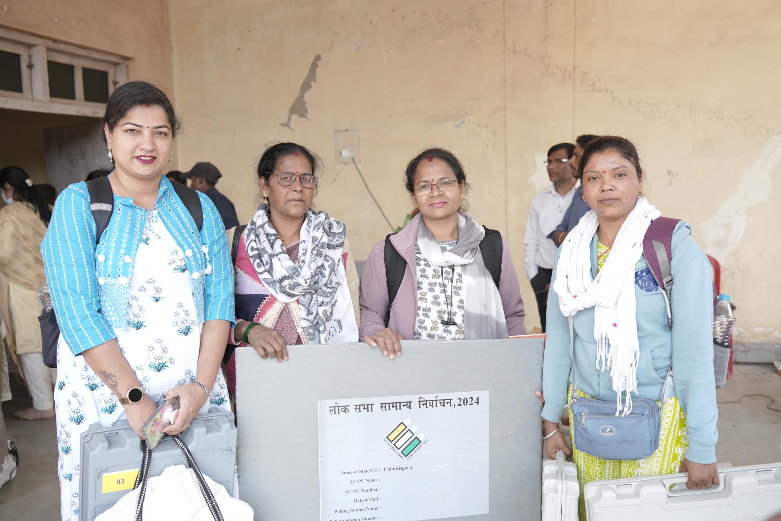 ईवीएम के साथ मतदान केंद्र के लिए रवाना होती पीठासीन अधिकारी श्रीमती किरण यादव ने कहा की जिला प्रशासन ने हमें जो जिम्मेदारी दी है उसे हम निष्ठापूर्वक पूरा करेंगे। उन्होंने कहा कि महिलाओं को मतदान कराने की मौका मिलने से हम गौरवान्वित महसूस कर रही है। पीठासीन अधिकारी के रूप में मतदान केंद्र के लिए जाने वाली सरोज केसरी भगत ने बताया कि इस कार्य को करने में किसी प्रकार का संकोच नहीं है। बहुत खुशी की बात है कि हमें यह जिम्मेदारी मिली है और इस जिम्मेदारी को पूरा करेंगे। पीठासीन अधिकारी की जिम्मेदारी निभाने वाली श्रीमती नेहा सिंह ने बताया कि इस कार्य से उन्हें गर्व की अनुभूति होती है। उन्होंने कहा कि निर्वाचन का दायित्व बहुत ही जिम्मेदारी और गंभीरता से जुड़ा हुआ है। हम सभी इसे कुशलतापूर्वक संपादित करेंगे।