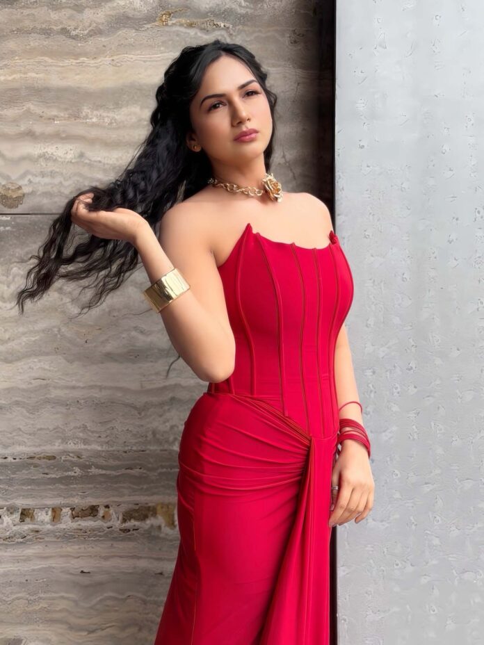 आकांक्षा चमोला ने अपनी नई तस्वीरें सोशल मीडिया पर शेयर की हैं. जिसमें वह रेड वाइन बनी हुई दिख रही हैं. इन फोटोज में आकांक्षा ने लाल रंग का गाउन पहना है, जो ऑफ शोल्डर है.