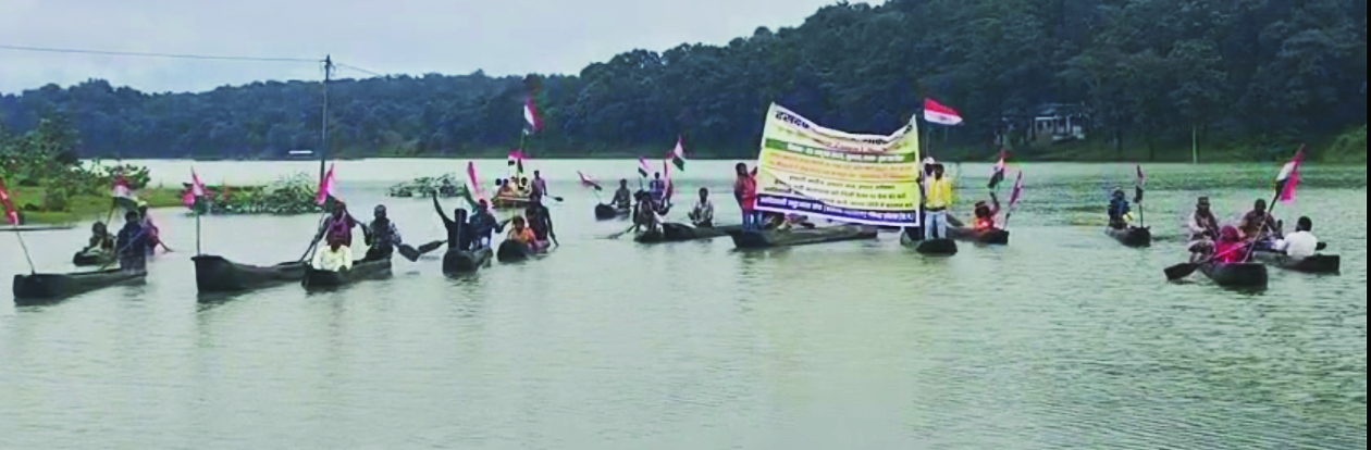 मछुआरा संघ ने डुबान में नौका चलाकर जताया विरोध