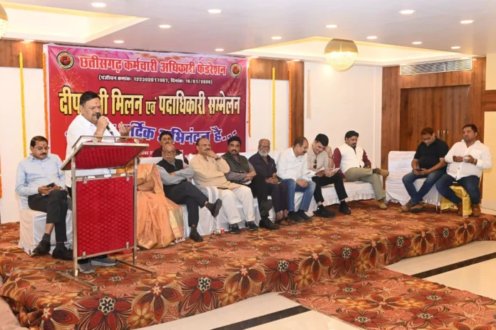रायपुर। छत्तीसगढ़ कर्मचारी अधिकारी फेडरेशन के आह्वान पर आज दीपावली मिलन एवं पदाधिकारी सम्मेलन का भव्य आयोजन किया गया। इस कार्यक्रम में प्रदेशभर के विभिन्न कर्मचारी संगठनों के नेता बड़ी संख्या में शामिल हुए। कार्यक्रम के दौरान फेडरेशन द्वारा कर्मचारियों की 11 सूत्रीय मांगों को लेकर आगामी निश्चितकालीन आंदोलन की रूपरेखा पर विस्तृत चर्चा की गई। निर्णय लिया गया कि आंदोलन की अंतिम रणनीति फेडरेशन की कोर कमेटी की बैठक में तय की जाएगी।