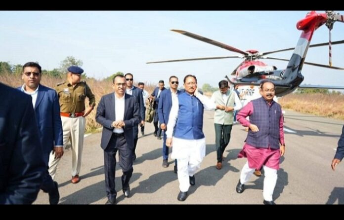 कोरबा : प्रदेश के मुख्यमंत्री विष्णुदेव साय आज अल्प प्रवास पर कोरबा पहुंचे। उनके साथ उपमुख्यमंत्री अरुण साव और वित्त मंत्री ओ.पी. चौधरी भी थे। वे प्रदेश के कैबिनेट मंत्री सह कोरबा नगर विधायक लखन लाल देवांगन के यहाँ एक वैवाहिक कार्यक्रम में शामिल होने कोरबा पहुँचे। रूमगरा हवाई पट्टी पर हेलीकॉप्टर से उतरने के पश्चात जिलाधीश अजीत वसंत और पुलिस अधीक्षक सिद्दार्थ तिवारी , कोरबा महापौर श्रीमती संजू देवी राजपूत, डीएफओ श्रीमती प्रेमलता यादव, नगर निगम आयुक्त आशुतोष पांडेय सहित अन्य अधिकारियों ने भी उनका आत्मीय स्वागत किया। हेलीकॉप्टर से उतरने के पश्चात सभी अतिथि कार्यक्रम स्थल की और रवाना हो गए।