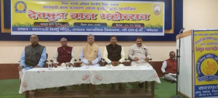 कोरबा । विद्याभारती अखिल भारतीय शिक्षा संस्थान से संबंद्ध सरस्वती शिक्षा संस्थान छत्तीसगढ़ रायपुर के अन्तर्गत सरस्वती बाल कल्याण न्यास इन्दौर म.प्र. के तत्वावधान में ‘‘देवपुत्र बाल महोत्सव’’ सरस्वती शिशु मंदिर उच्चतर माध्यमिक विद्यालय, सीएसईबी कोरबा में आयोजित किया गया।