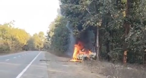 कोरबा। जिले के ग्राम कापा नवापारा(चोटिया) के जंगल रास्ते से गुजरते वक्त चलती कार में एकाएक आग लग गई। आग लगते ही चालक ने किसी तरह कूद कर अपनी जान बचाई। इसके बाद लहराती कार सड़क से उतर कर पेड़ से टकरा कर थम गई। घटना शाम करीब 5 बजे की है। बताया जा रहा है कि कार अम्बिकापुर की तरफ से आकर बिलासपुर जा रही थी।