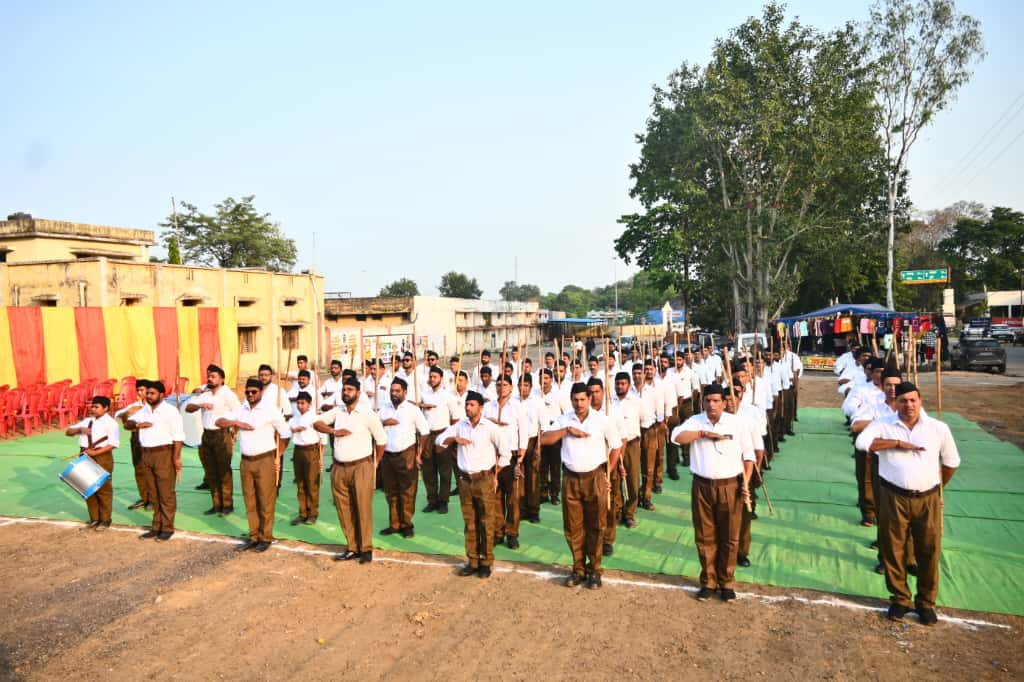 कटघोरा । राष्ट्रीय स्वयंसेवकों का विजयदशमी पर्व 25 सितंबर से 15 अक्टूबर तक पूरे देश में मनाया जा रहा है विजयदशमी पर्व के अंतर्गत कटघोरा में 12 अक्टूबर को कार्यक्रम संपन्न हुआ।कार्यक्रम के मुख्य अतिथि अनिल डागा एवं अध्यक्षता गोपाल प्रसाद उपस्थित रहे। मुख्य वक्ता ने कहा है कि स्वयं को राष्ट्र का एक घटक मानकर समाज के बीच संघ कार्य का विस्तार 6 चरण में संघ ने तय किया है, सामाजिक सद्भाव, पर्यावरण संरक्षण, हिन्दू सम्मेलन इत्यादि के माध्यम से संघ कार्य को गति देना है, स्वयं सेवक का गणवेश केवल कपड़ों का रूप नहीं, बल्कि जीवन का दृष्टिकोण और सेवा का संकल्प है। गणवेश पहनना स्वयंसेवक को यह याद दिलाता है कि वह व्यक्तिगत नहीं, बल्कि सामूहिक सेवा का प्रतिनिधि है।अनुशासन, एकता और समर्पण का प्रतीकजाति, वर्ग और भाषा से ऊपर राष्ट्र के लिए समर्पण,छोटे स्वार्थों से ऊपर उठकर समाज और देशहित में योगदानसंघ के अनुसार, संघ कार्य साधना का प्रतीक है, जो हर शाखा, हर प्रणाम और हर कदम में जीवंत रहता है। यह स्वयंसेवक को केवल दर्शक नहीं रहने देता, बल्कि उसे राष्ट्र निर्माण का सक्रिय भागीदार बनाता है।संघ ने युवाओं को आह्वान किया है कि एक सामान्य व्यक्ति राष्ट्र के लिए क्या कर सकता है, तो शाखा में आकर ही पता चलता है।सैकड़ो राष्ट्रीय स्वयंसेवकों का पथ संचलन बैंड बाजा के साथ संपन्न हुआ। पथ संचलन के समय जगह जगह फुल से वर्षा किया गया जिसमें संस्कार भारती इकाई कटघोरा,अखिल भारतीय विद्यार्थी परिषद, भाजपा, श्रेय महिला समूह,अग्रवाल समाज,जायसवाल समाज,ब्राह्मण समाज, शिक्षक वर्ग,व्यापारी वर्ग,स्कूली बच्चे भी शामिल रहे।पथ संचलन को देखने के लिए गली मोहल्ले में सभी जाती वर्ग के लोग बाहर निकल गए।जगह जगह उन लोगों का स्वागत किया गया।पुलिस की कड़ी व्यवस्था किया गया था। आने जाने वाले वाहनों के लिए वन वे मार्ग किया गया था।
