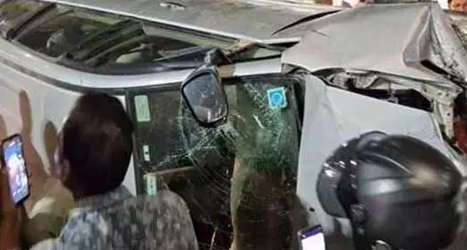 पटना: बिहार की राजधानी पटना के तारा मंडल इलाके में रविवार रात तेज रफ्तार इनोवा कार एक बड़े सड़क हादसे का कारण बन गई. घटना रात करीब 9 बजे की है जब तेज रफ्तार से आ रही इनोवा ने कई गाड़ियों को टक्कर मारने के बाद सड़क किनारे खड़े आठ लोगों को रौंद दिया. हादसे के बाद कार पलट गई. घटना के बाद स्थानीय लोगों में आक्रोश फैल गया. भीड़ ने कार चालक की जमकर पिटाई कर दी. सूचना मिलते ही कोतवाली थाने की पुलिस मौके पर पहुंची और सभी घायलों को इलाज के लिए अस्पताल भेजा.