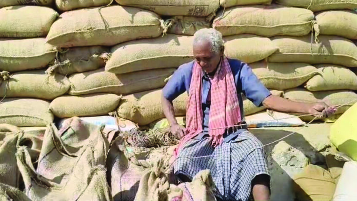 हमाल नहीं उपार्जन केंद्र में, किसानों को धान के बारदाने खुद सिलने बनानी पड़ रही मानसिकता