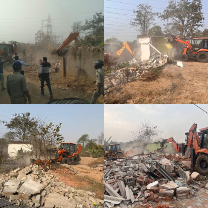 तहसीलदार दर्री, तहसीलदार दीपका, तहसीलदार कटघोरा, नायब तहसीलदार दर्री, पुलिस विभाग तथा नगर निगम के संयुक्त दल द्वारा यह अभियान संचालित किया गया। संबंधित शासकीय भूमि बड़े झाड़ के जंगल मद में अवैध रूप से फ़ार्म हाउस बनाकर व्यावसायिक गतिविधि संचालित की जा रही थी। 09 फरवरी 2026 को अतिक्रमणकारियों को बेदख़ली नोटिस जारी कर 15 फरवरी 2026 तक बेजा कब्जा हटाने के निर्देश दिए गए थे। निर्धारित तिथि तक कब्जा खाली न किए जाने के कारण आज 23 फरवरी 2026 को संयुक्त कार्रवाई कर अवैध रूप से निर्मित फ़ार्म हाउसों एवं व्यावसायिक संरचनाओं को हटाया गया।