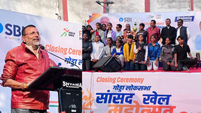 गोड्डा संसदीय क्षेत्र में देवघर और गोड्डा में छह दिवसीय सांसद खेल महोत्सव का आयोजन किया गया। शुक्रवार को इंडोर स्टेडियम में सांसद खेल महोत्सव के समापन समारोह पर सांसद डॉ. निशिकांत दुबे ने खेल के प्रति उत्साह और खिलाडिय़ों को प्रोत्साहित करने के लिए कई घोषणाएं की। उन्होंने कहा कि प्रधानमंत्री का प्रयास है कि भारत 2036 में होने वाले ओलंपिक की मेजबानी करे। खिलाडिय़ों का हौसला बढ़ाते हुए उन्होंने कहा कि ओलंपिक में गोड्डा लोकसभा क्षेत्र का खिलाड़ी अगर मेडल लाकर देगा तो वह अपनी तरफ से उस खिलाड़ी को एक करोड़ रुपया देंगे। लेकिन शर्त इतना है कि मेडल लाकर देना होगा। कहा कि एक नहीं 50 पदक लाकर खिलाड़ी दें वह 50 करोड़ तक का पुरस्कार देंगे। मेडल प्राप्त होगा, तभी सही मायने में गोड्डा लोकसभा का विकास दिखेगा। अभी 10 वर्ष का समय है।