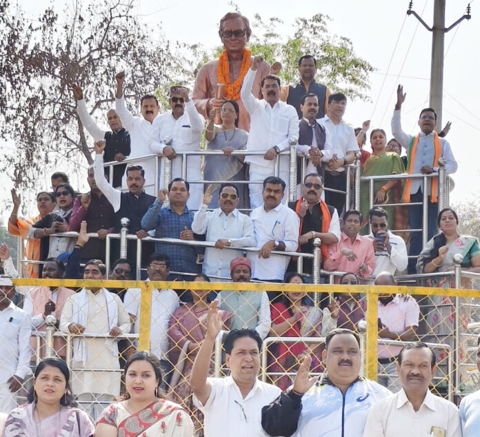कोरबा। 11 फरवरी को भारतीय जनता पार्टी द्वारा परम श्रद्धेय पंडित दीनदयाल उपाध्याय जी की पुण्यतिथि प्रत्येक वर्ष समर्पण दिवस के रूप में मनाई जाती है। इसी क्रम में इस वर्ष भी 11 फरवरी को जिला भाजपा कार्यालय, कोरबा में पंडित दीनदयाल उपाध्याय जी को पूर्णत: सादगी एवं श्रद्धा के साथ श्रद्धासुमन अर्पित किए गए। इसके पश्चात घंटाघर स्थित पंडित दीनदयाल उपाध्याय जी की प्रतिमा पर माल्यार्पण किया गया। लोकप्रिय व ऊर्जावान जिलाध्यक्ष श्री गोपाल मोदी, सह संभाग प्रभारी रायपुर डॉ. राजीव सिंह, महापौर श्रीमती संजू देवी राजपूत, अध्यक्ष छत्तीसगढ़ राज्य हाथकरघा विपणन एवं विकास संघ श्री भोजराम देवांगन के गरिमामय उपस्थिति में आयोजित इस कार्यक्रम में भाजपा के ज्येष्ठ-श्रेष्ठ कार्यकर्ता व पदाधिकारी बड़ी संख्या में उपस्थित रहे तथा सभी ने पंडित दीनदयाल उपाध्याय जी के बताए मार्ग पर चलने का संकल्प लिया।