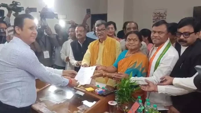 रायपुर। छत्तीसगढ़ से खाली हो रही राज्यसभा की सीट के लिए कांग्रेस प्रत्याशी फूलोदेवी नेताम ने गुरुवार को नामांकन दाखिल किया. इस दौरान विधानसभा में नेता -प्रतिपक्ष डॉ. चरण दास महंत, छत्तीसगढ़ कांग्रेस अध्यक्ष दीपक बैज, विधायक उमेश पटेल सहित कांग्रेस के कई विधायक और नेता मौजूद रहे. बता दें कि छत्तीसगढ़ से राज्यसभा की दो सीटें खाली हो रही हैं, इनमें से एक फूलोदेवी नेताम और दूसरा केटीएस तुलसी की है, जिनका कार्यकाल 9 अप्रैल को समाप्त हो रहा है. सीट हो रही सीट के लिए कराए जा रहे चुनाव में कांग्रेस ने फूलोदेवी नेताम को एक बार फिर से रिपीट किया है.