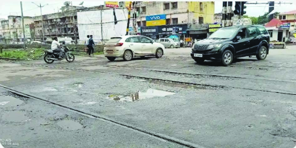 रेलवे क्रॉसिंग पर गड्ढों का कब्जा, जान जोखिम में