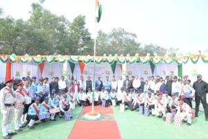 सिंघीतराई, सक्ती, 28 जनवरी। 77वां गणतंत्र दिवस समारोह वेदांता लिमिटेड छत्तीसगढ़ थर्मल पावर प्लांट (व्हीएलसीटीपीपी) प्रबंधन ने धूमधाम से आयोजित किया। वेदांता लिमिटेड द्वारा ग्राम सिंघीतराई में अधिग्रहित 1200 मेगावॉट विद्युत संयंत्र की 600 मेगावॉट क्षमता की पहली इकाई का प्रचालन प्रारंभ हो चुका है। संयंत्र परिसर में आयोजित समारोह में व्हीएलसीटीपीपी के मुख्य प्रचालन अधिकारी श्री देवेंद्र कुमार पटेल ने व्हीएलसीटीपीपी परिवार के सदस्यों को संबोधित करते हुए कहा कि वेदांता समूह ने अपने निवेश से बरसों से बंद पड़े संयंत्र का कायाकल्प करके उससे उत्पादन प्रारंभ कर दिया है जिसकी पहली इकाई से वर्तमान में 600 मेगावॉट विद्युत का उत्पादन हो रहा है। उन्होंने कहा कि हमें देश के विकास में कंधे से कंधा मिलाकर योगदान करना है ताकि औद्योगिक प्रगति के क्षेत्र में हमारा देश दुनिया के लिए मिसाल बने। श्री पटेल ने सलामी गारद का निरीक्षण कर तिरंगा फहराया।