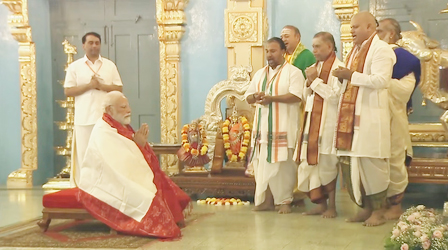 प्रधानमंत्री नरेंद्र मोदी बुधवार को आंध्र प्रदेश के पुट्टपर्थी में आयोजित भगवान श्री सत्य साईं बाबा के भव्य शताब्दी समारोह में शामिल हुए। इस दौरान, पीएम मोदी ने श्री सत्य साईं बाबा के पवित्र श्राइन और महासमाधि पर पूजा की। प्रधानमंत्री नरेंद्र मोदी ने पुट्टपर्थी में श्री सत्य साईं बाबा के पवित्र श्राइन और महासमाधि पर जाकर उन्हें श्रद्धासुमन अर्पित किए। आंध्र प्रदेश के मुख्यमंत्री एन चंद्रबाबू नायडू और उपमुख्यमंत्री पवन कल्याण भी मौजूद रहे। श्री सत्य साईं बाबा के जन्म शताब्दी समारोह के दौरान मुख्यमंत्री एन. चंद्रबाबू नायडू ने पुट्टपर्थी में प्रधानमंत्री नरेंद्र मोदी का अभिनंदन किया। कार्यक्रम में पूर्व भारतीय क्रिकेटर सचिन तेंदुलकर, अभिनेत्री ऐश्वर्या राय बच्चन, केंद्रीय मंत्री राम मोहन नायडू किंजरापु और जी किशन रेड्डी भी उपस्थित रहे। समारोह में शामिल होने से पहले प्रधानमंत्री मोदी ने पुट्टपर्थी में रोड शो भी किया। प्रधानमंत्री मोदी का स्वागत करने के लिए बड़ी संख्या में लोग सडक़ों पर खड़े दिखाई दिए।