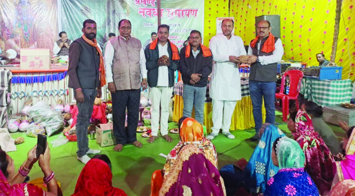 कल सनातन संघर्ष समिति के जिला संयोजक अजय कुमार दुबे इस पावन कथा में रामायण श्रवण करने उपस्थित हुए । इस अवसर पर आपने उपस्थित ग्रामवासियों एवं मातृ-शक्तियों को संबोधित करते हुए आग्रह किया कि प्रत्येक परिवार यह प्रतिज्ञा करें कि वो अपने घरों में अनिवार्य रूप से रामायण रखेंगे एवं अपने बच्चों को कम से कम एक घंटे उसका वाचन करवायेंगे। क्योंकि आज स्कूली बच्चों में ही सर्वाधिक भटकाव की स्थिति निर्मित हो रही है। साथ ही आपने सभी से एक साथ भोजन एवं एक साथ पूजा का भी आग्रह किया। इस अवसर पर अमरनाथ कौशिक के द्वारा सभी को भारत माता का चित्रण एवं पंच परिवर्तन का पत्रक भी वितरित किया गया। साथ में लखनलाल राठौर एवं छोटेलाल पटेल भी शामिल हुए।
