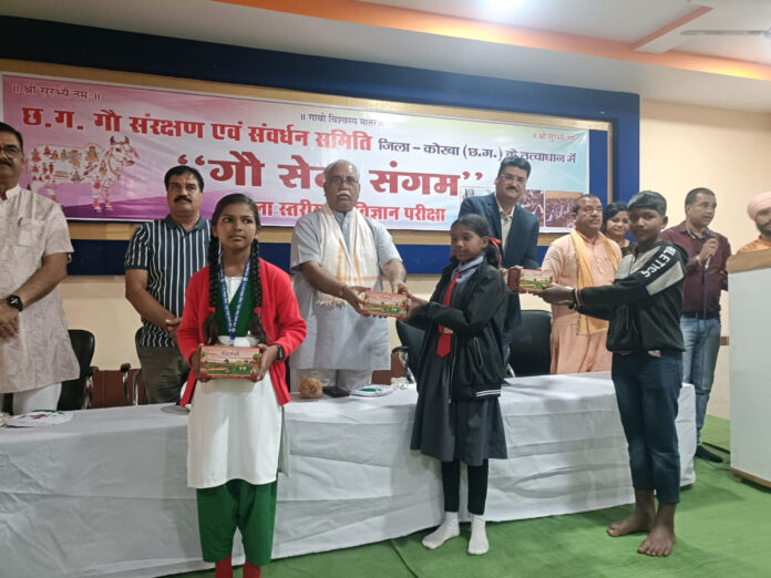परीक्षार्थियों को सम्मानित करते हुए कोरबा के जिला शिक्षा अधिकारी तामेश्वर उपाध्याय ने बधाई दी। उन्होंने गौ विज्ञान परीक्षा के प्रति हिंदी और अंग्रेजी माध्यम के विद्यार्थियों की रुचि और उनकी लगन के साथ-साथ इस आयोजन को अद्भुत बताया। उन्होंने कहा कि अकादमिक शिक्षा से अलग भी बहुत से ऐसे विषय होते हैं जो विद्यार्थियों का ज्ञानवर्धक करते है। निश्चित रूप से यह विषय अत्यंत महत्वपूर्ण है। इसकी उपयोगिता सर्वविदित है। आयोजकों ने जो भागीरथी प्रयास किया है, वह अकल्पनीय है। समिति बधाई की पात्र है।
