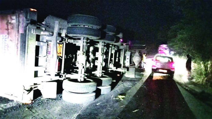 कोरबा। छत्तीसगढ़ के कोरबा जिले में शनिवार को देर रात लगभग 10 बजे एक बड़ा सडक़ हादसा हो गया। कटघोरा-बिलासपुर बायपास मार्ग पर कोयला से भरा एक ट्रेलर अनियंत्रित होकर पलट गया, जिससे आवागमन पूरी तरह बाधित हो गया। हादसे के बाद सडक़ के दोनों ओर वाहनों की लंबी कतारें लग गईं और यातायात घंटों तक ठप रहा।
