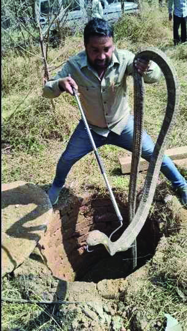 सूचना मिलते ही जितेंद्र सारथी ने मामले की जानकारी कोरबा डीएफओ प्रेमलता यादव को दी। उनके निर्देशानुसार और एसडीओ आशीष खेलवार के मार्गदर्शन में बालकों वन परिक्षेत्र अधिकारी जयंत सरकार,जितेंद्र सारथी अपनी टीम के सिद्धांत जैन,राजू बर्मन, नागेश सोनी, अंजय देवांगन के साथ तुरंत उस स्थान के लिए कोरबा से रवाना रवाना हुए। गांव पहुंचने के बाद सबसे पहले ग्रामीणों को सुरक्षित दूरी पर किया गया और फिर तय प्रोटोकॉल के तहत रेस्क्यू अभियान शुरू किया गया। इस रेस्क्यू ऑपरेशन में किंग कोबरा बंद पड़े सेफ्टिक टैंक में पिछले कुछ दिनों से होनी की बात कही गई, जिसको धैर्यपूर्वक और सावधानी से काम करते हुए आखिरकार टीम ने किंग कोबरा को सुरक्षित रेस्क्यू कर थैले में डालने में सफलता प्राप्त की। सफल रेस्क्यू के बाद गांव और घर के लोगों ने राहत की सांस ली साथ ही कहा किंग कोबरा (पहाड़ चित्ती) हमारे क्षेत्र का धरोहर एवं देव हैं, जिसका संरक्षण करना ज़रूरी हैं।रेस्क्यू के बाद नियमानुसार पंचनामा तैयार किया गया और फिर किंग कोबरा को उसके प्राकृतिक आवास क्षेत्र के घने जंगल में सुरक्षित रूप से छोड़ दिया गया। इस पूरे अभियान में बालकों वन परिक्षेत्र अधिकारी जयंत सरकार, जितेंद्र सारथी, राजेश भारद्वाज, सिद्धांत जैन, राजू बर्मन, नागेश सोनी एवं बड़ी संख्या में ग्रामीण उपस्थित रहे।कोरबा डीएफओ प्रेमलता यादव ने आम जनों से अपिल किया है की किंग कोबरा, जिसे स्थानीय भाषा में पहाड़ चित्ती भी कहा जाता है, वन्यप्राणी (संरक्षण) अधिनियम-1972 के अनुसार वर्ग- ढ्ढ में रखा गया है अर्थात् इस जीव को छेडऩे, मारने या किसी भी तरह से नुकसान पहुँचाना अपराध कि श्रेणी में आता है, अत: जब भी आप के घरों के आस पास किंग कोबरा या अन्य कोई सांप दिखाई दे तो वन विभाग को सूचना दे या टोल फ्री नंबर 8817534455 पर सूचना दे।दुनिया का सबसे लंबा विषधर सांप है।