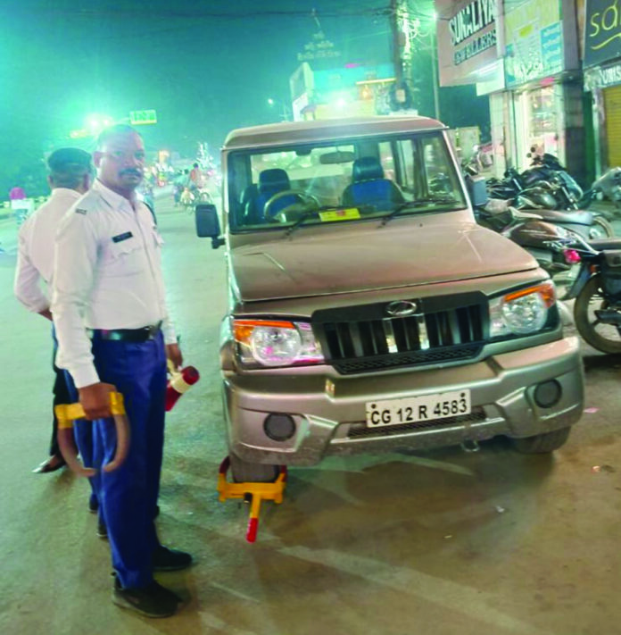 कोरबा। शहर की बिगड़ती यातायात व्यवस्था को दुरुस्त करने के लिए ट्रैफिक पुलिस ने सख्त रुख अपनाया है। मुख्य मार्गों और बाजार क्षेत्र में कहीं भी वाहन खड़ा कर आवागमन में बाधा उत्पन्न करने वाले वाहन चालकों पर शिकंजा कसते हुए पुलिस ने लॉक (व्हील क्लैम्प) की कार्रवाई की।
