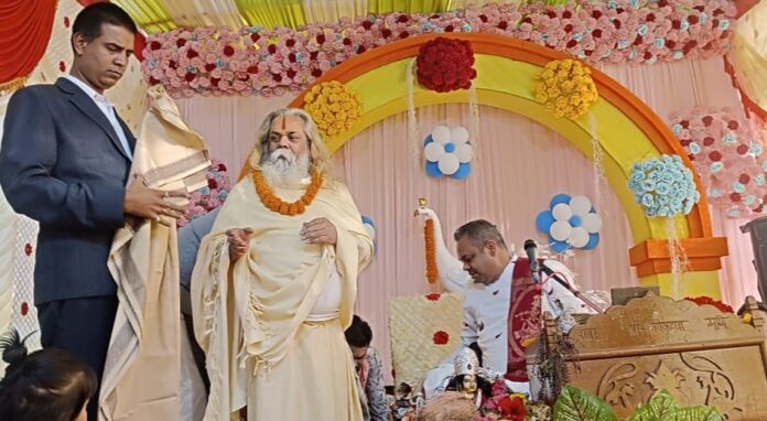 सरसीवांं के दुबे परिवार द्वारा आयोजित श्रीमद् भागवत महापुराण ज्ञान यज्ञ में सम्मिलित हुए महामण्डलेश्वर